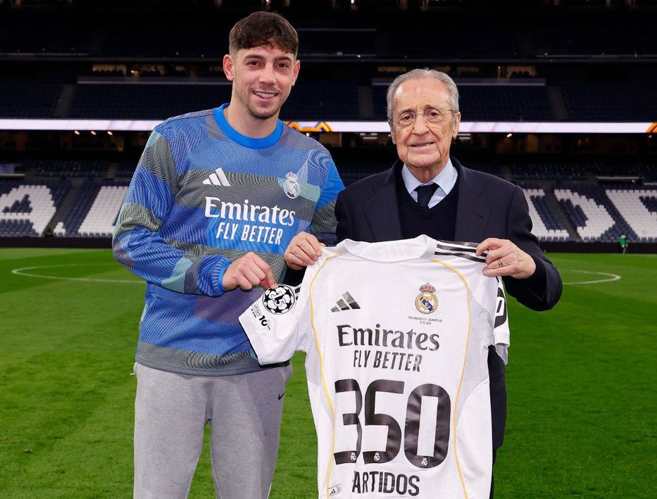 FútbolUy. Seguinos en Twitter @futbolportaluy Federico Valverde sigue agrandando su historia en el Real Madrid y alcanzó un nuevo hito en su carrera. En el partido frente a Levante, por la fecha 20 de LaLiga 2025/2026, el mediocampista uruguayo disputó su encuentro número 350 con la camiseta merengue.El reconocimiento llegó tras el partido en el Estadio Santiago Bernabéu, donde el presidente del club, Florentino Pérez, le entregó una camiseta conmemorativa […]