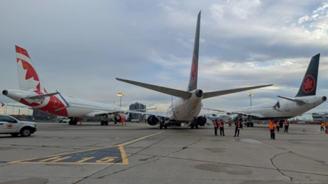 Un Boeing 737 Max colisionó con otros dos aviones mientras intentaba estacionar en el aeropuerto Pearson de Toronto, Canadá.